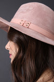 This hat is fedora style with its pinched crown and brim, featuring an attached trim belt with lace accents. Finished with interior ribbon lining. 35% Cotton. 65% Polyester.