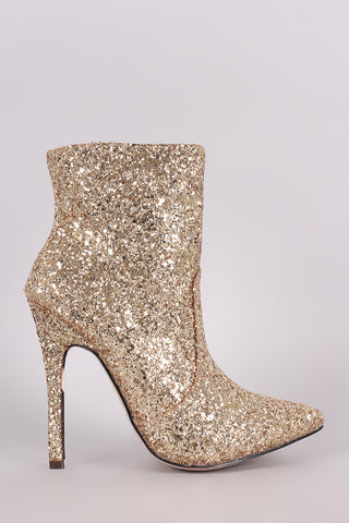 Glitter Encrusted Pointy Toe Lace Up Chunky Heeled Boots