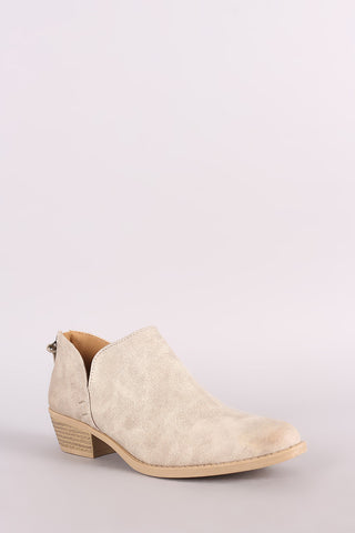 Qupid Oil Finished Almond Toe Chunky Heeled Western Cowgirl Booties