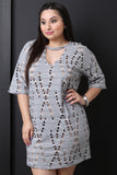 Laser Eyelet Striped Cutout T-Shirt Dress