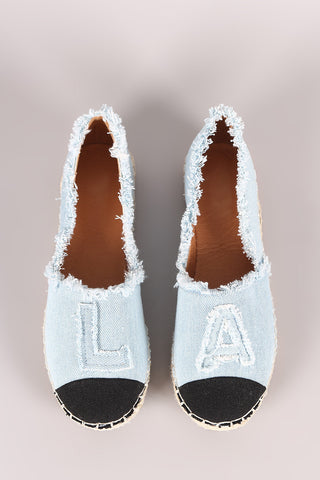 Frayed Denim Contrast Toe Cap Espadrille Slip On Loafer Flat