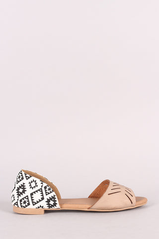 Qupid Geo Cutout Peep Toe Slip On Tribal Dorsay Flat
