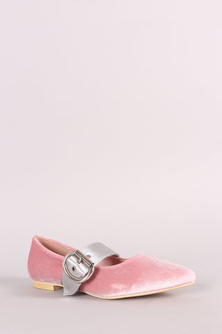 Crushed Velvet Pointy Toe Mary Jane Flat