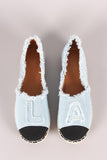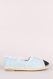 Frayed Denim Contrast Toe Cap Espadrille Slip On Loafer Flat