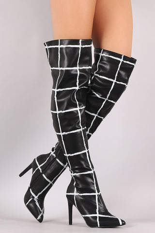 Grid Pattern Pointy Toe Stiletto Over-The-Knee Boots