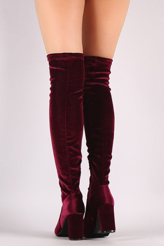Velvet Pointy Toe Stiletto Over-The-Knee Boots