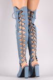 These stylish boots feature a peep toe silhouette, back zigzag cutouts design with lace-up detail, and covered chunky heel. Finished with a cushioned insole, soft lining, and partial side zip-up closure.