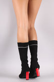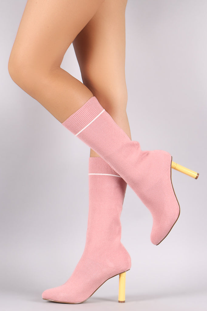 Ribbed Sweater Knit Oval Heeled Mid Calf Boots