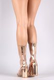 Metallic Trim Transparent Chunky Heeled Mid Calf Boots
