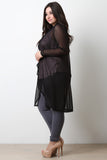 This  plus size cardigan  features a lightweight mesh fabrication, draped open front construction, long sleeves design, and asymmetrical hem. Accessories sold separately. 90% Nylon, 10% Spandex.
