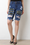 Camo Patched Denim Bermuda Shorts